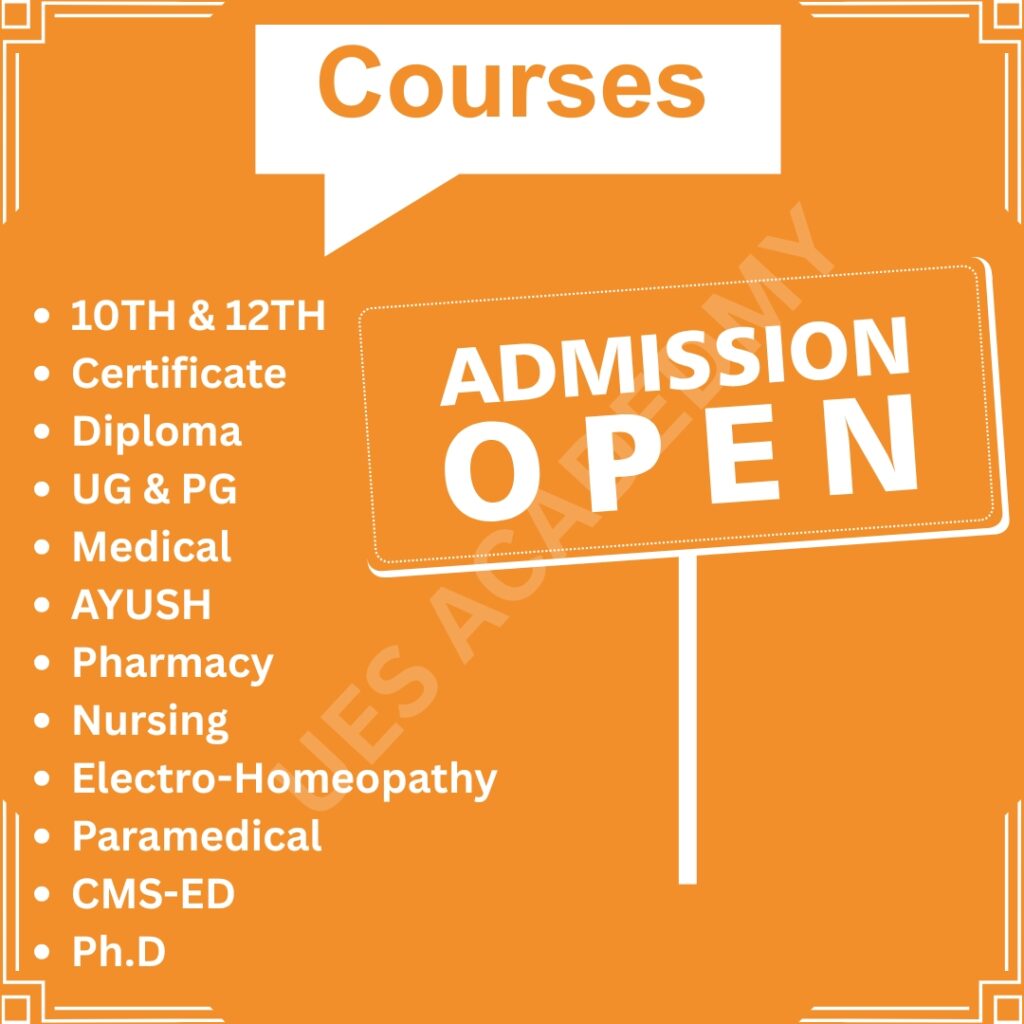 • UG Courses: 10+2 (Physics, Chemistry, Biology mandatory). Admission through merit or exams like NEET-UG, CET, state-level entrance tests.